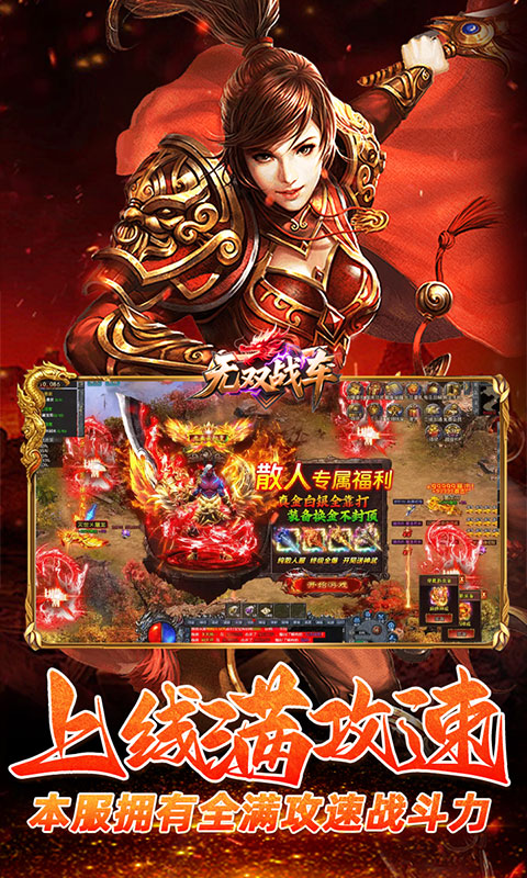 "无双战车是一款迷失,沉默,无限刀,大极品等集合为一体的传奇 区区万元首爆,各种福利大放送,每天赠送充值,装备全部打怪爆出 伤害合理,刀刀入肉,装备丰富"